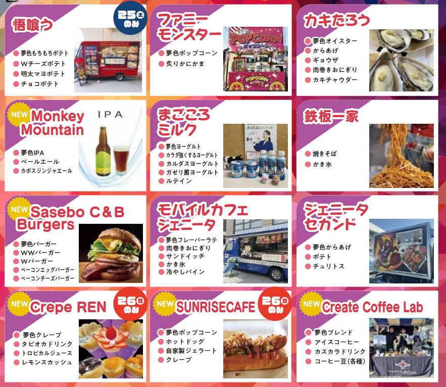 食ブースが並び、おいしい食べ物が大集合!以下の店舗が出店予定!